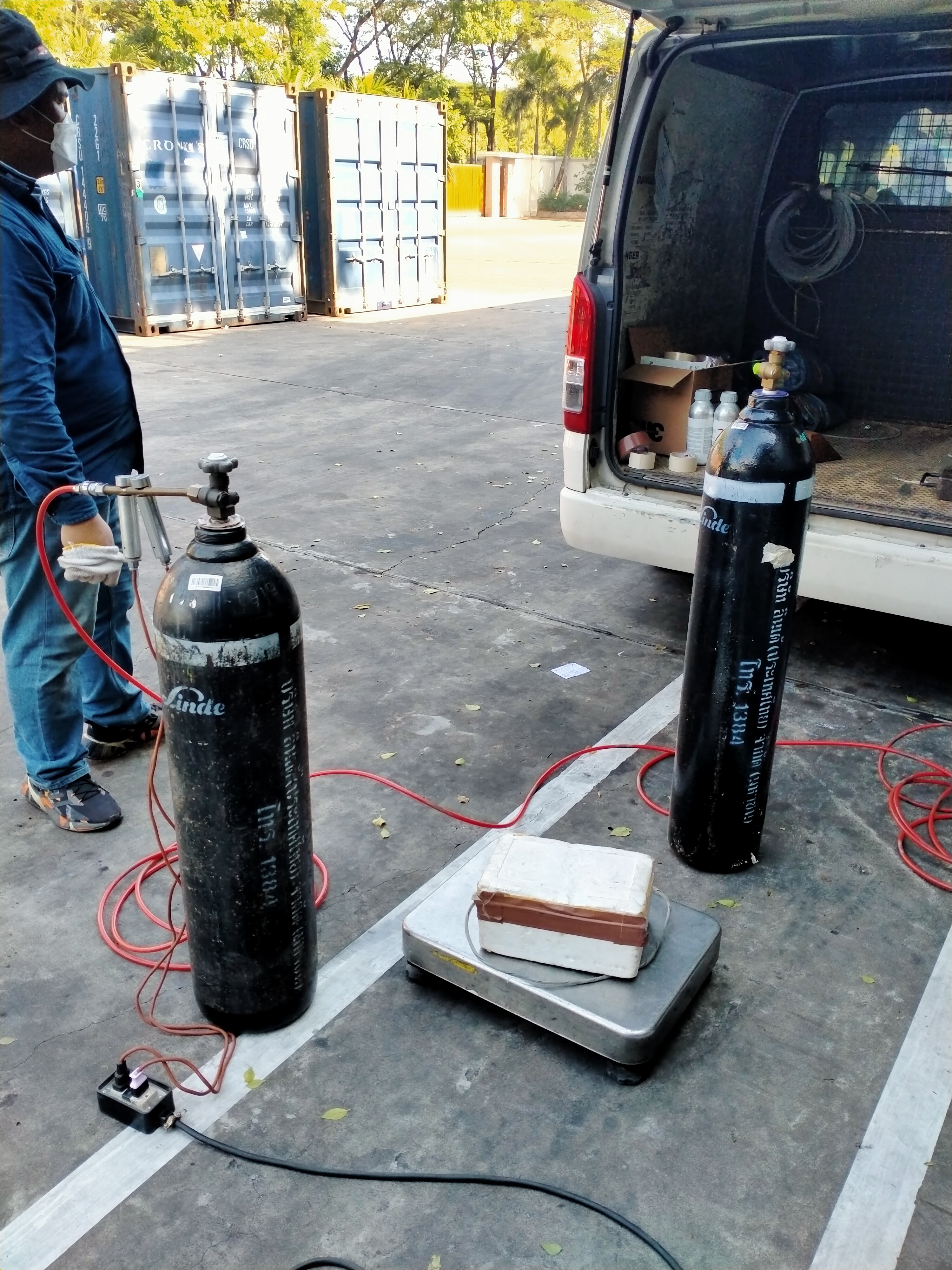 Fumigation: ดำเนินการรมยาตามแผนที่ได้กำหนดไว้ พร้อมตรวจเช็คการกระจายตัวของแก๊สภายใน Enclosure.